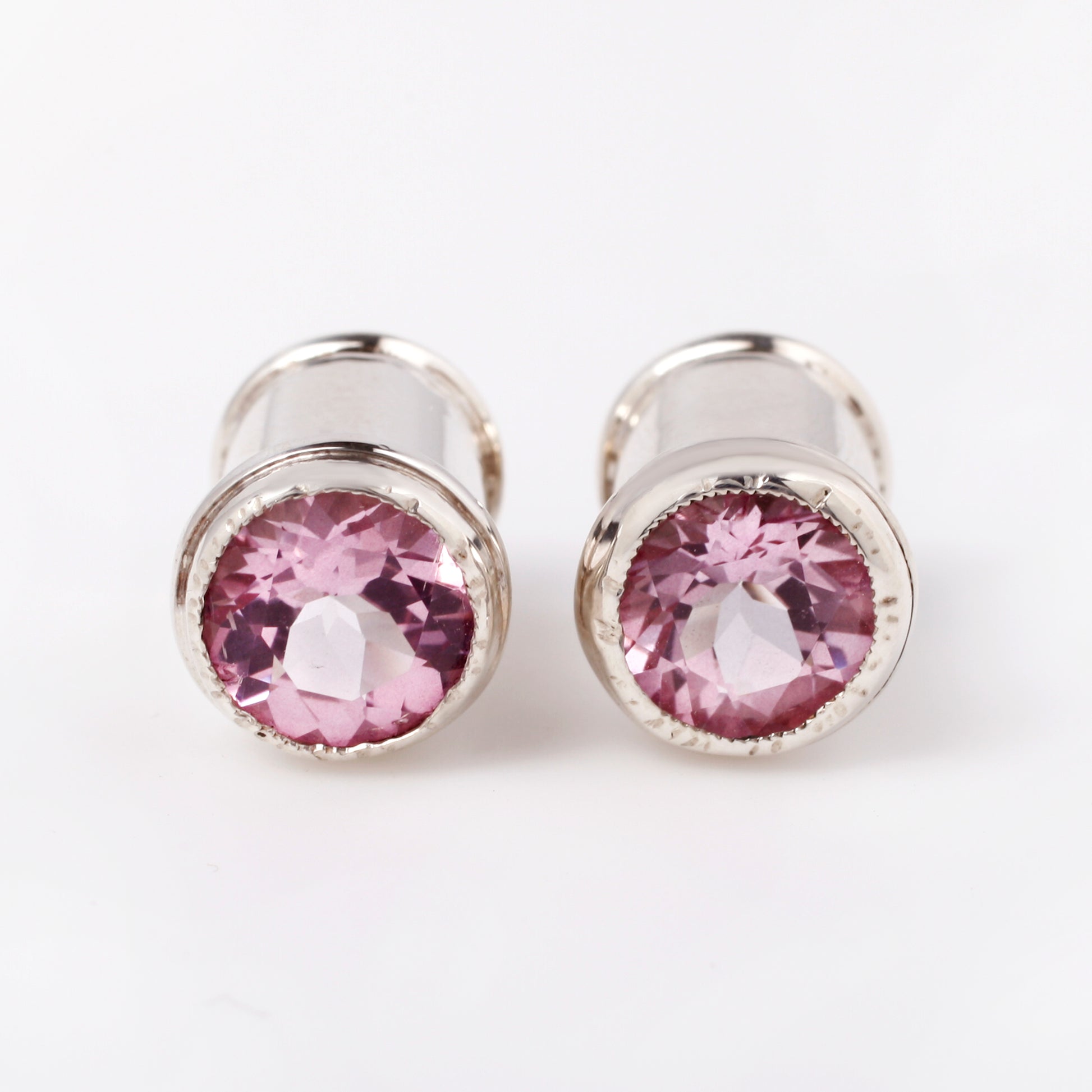 Pink Topaz and Silver Plugs