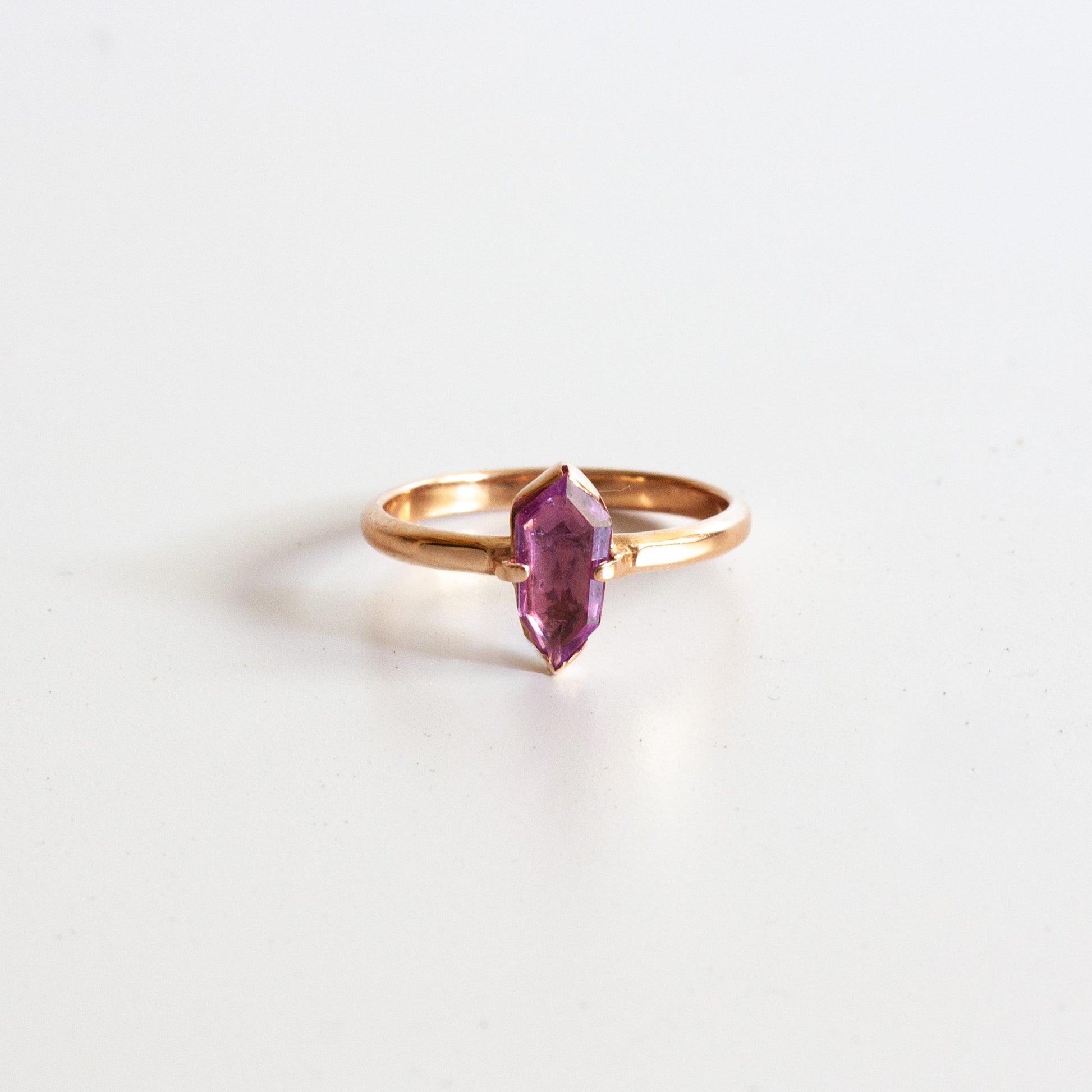 14k Rose Gold & Pink Sapphire Shield Ring