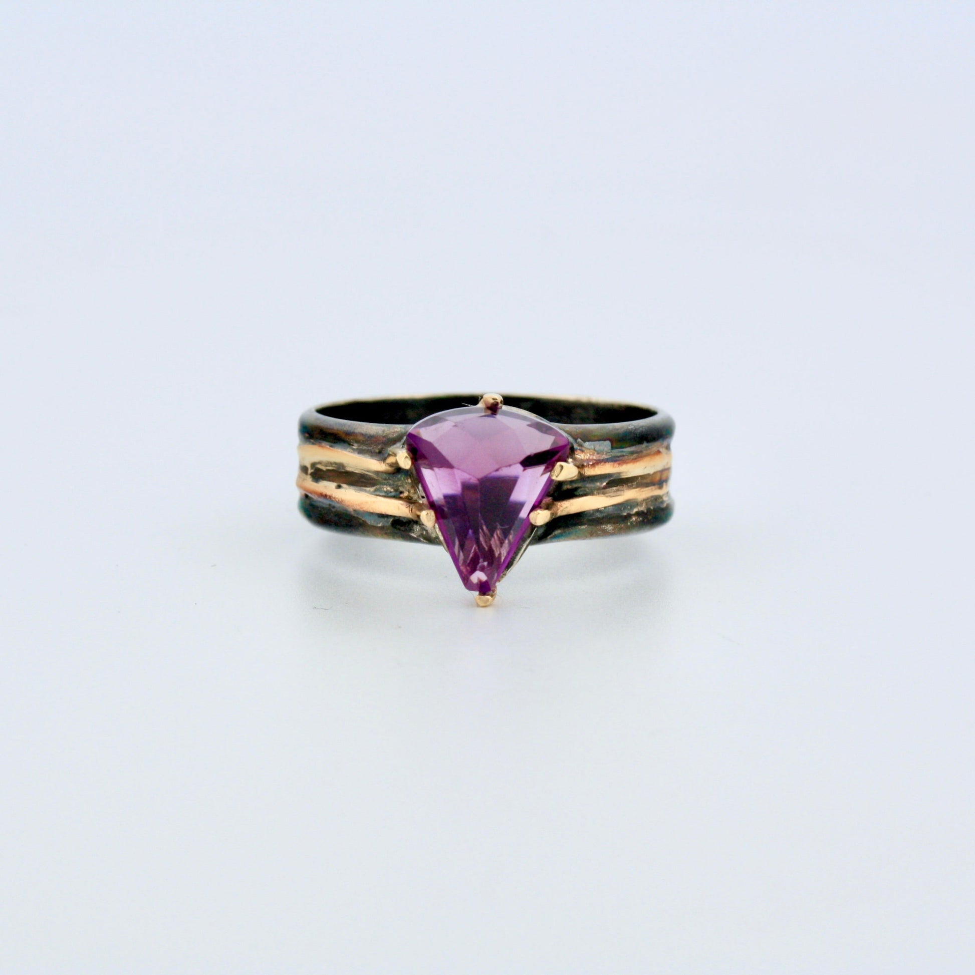 Oxidized Sterling Silver with Gold and Amethyst Cigar Ring